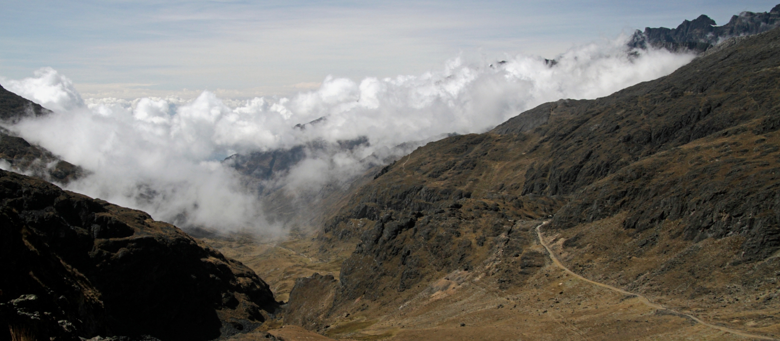 We will leave the city of La Paz and head heading towards the Illimani mountain. As we get closer to the mountain, it becomes more and more spectacular. We begin the trek at the San Francisco mine. Then we will make our way over a mountain pass at 4,600 metres elevation. Later in the afternoon, we will arrive at the village of Takesi. This will be our campsite for the evening at 3,700m.