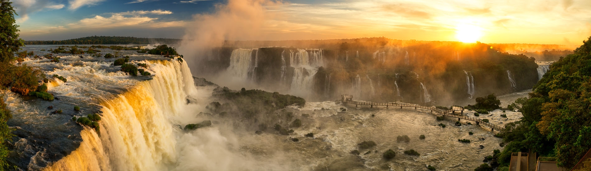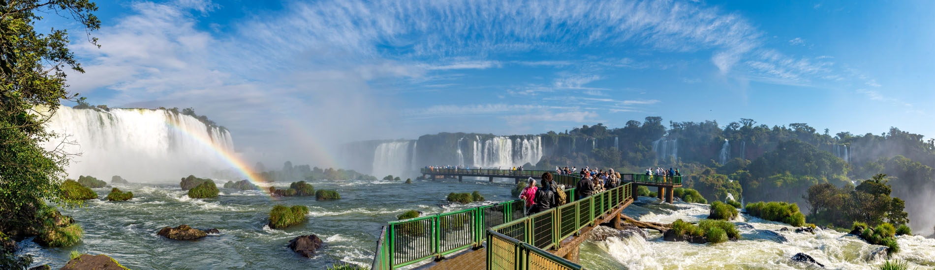 On the transfer to the Argentine side of Iguassu Falls, we will cross a bridge with 480 meters in length that was built in 1985, known popularly as the "International Fraternity Bridge" although its official name is International Tancredo Neves Bridge, conecting Brazil (Foz do Iguaçu) and Argentina (Puerto Iguazu). We will arrive at the Guests Center and the Iguazu National Park Entrance, which has snack bars, a restaurant, souvenir shops, toilets, medical attention and an interpretive building with giant panels showing the biodiversity of the subtropical humid forest. To get to the catwalks and see the Falls, guests take the gas-propelled trains that will lead to the Upper and Lower Falls Circuits, for walks around forests and beautiful landscapes, and especially the Devil’s Throat, which provides one of the best views of the Falls, due to the impact of the water that makes big clouds of steam and form an incredible rainbow.