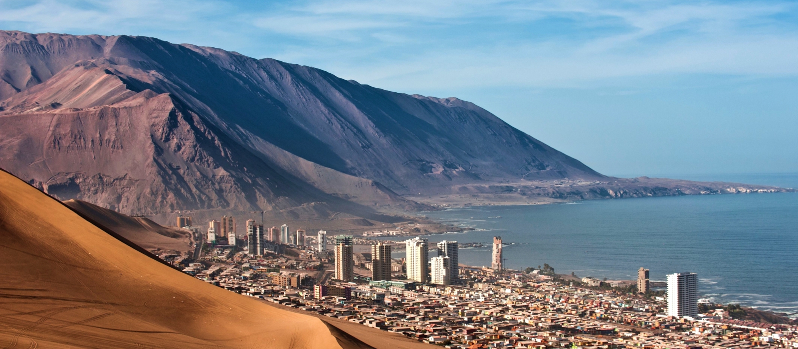 After breakfast, we will leave Colchane, leaving the altiplano behind us and head to the desert passing through the villages of Cariquima and Chuzmiza, with its unique terraces. We will then head to the Giant of Atacama, an 86 metre high geoglyph, etched into the Cerro Unita and dating back to the Tiwanaku civilization. In the afternoon, we will visit Humberstone and Santa Laura, walking down its now secluded streets. We can visit the theatre, the market and its church. At the end of the day, we will arrive in the city of Iquique, where we will spend the evening.