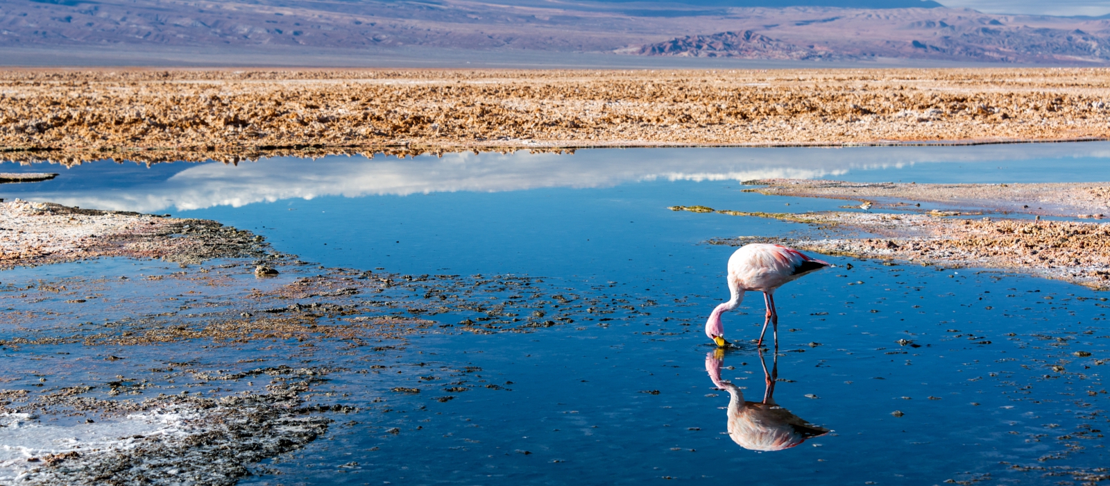 Today, we will head out to the High-plateau Lagoons of Meñique and Miscanti, amid volcanos and mountains. We will visit The Atacama Salt Flats and Toconao, a village constructed of volcanic stone. We will then head to see the habitat of the spectacular pink flamingos, on the Chaxa Lagoon. After lunch in Socaire, we will continue on towards the mountains, where The Meñique and Miscanti Lagoons are found at a whopping 4,500 metres elevation. These lagoons, surrounded by spectacular volcanoes were formed by the rising of the Andes, thousands of years ago.