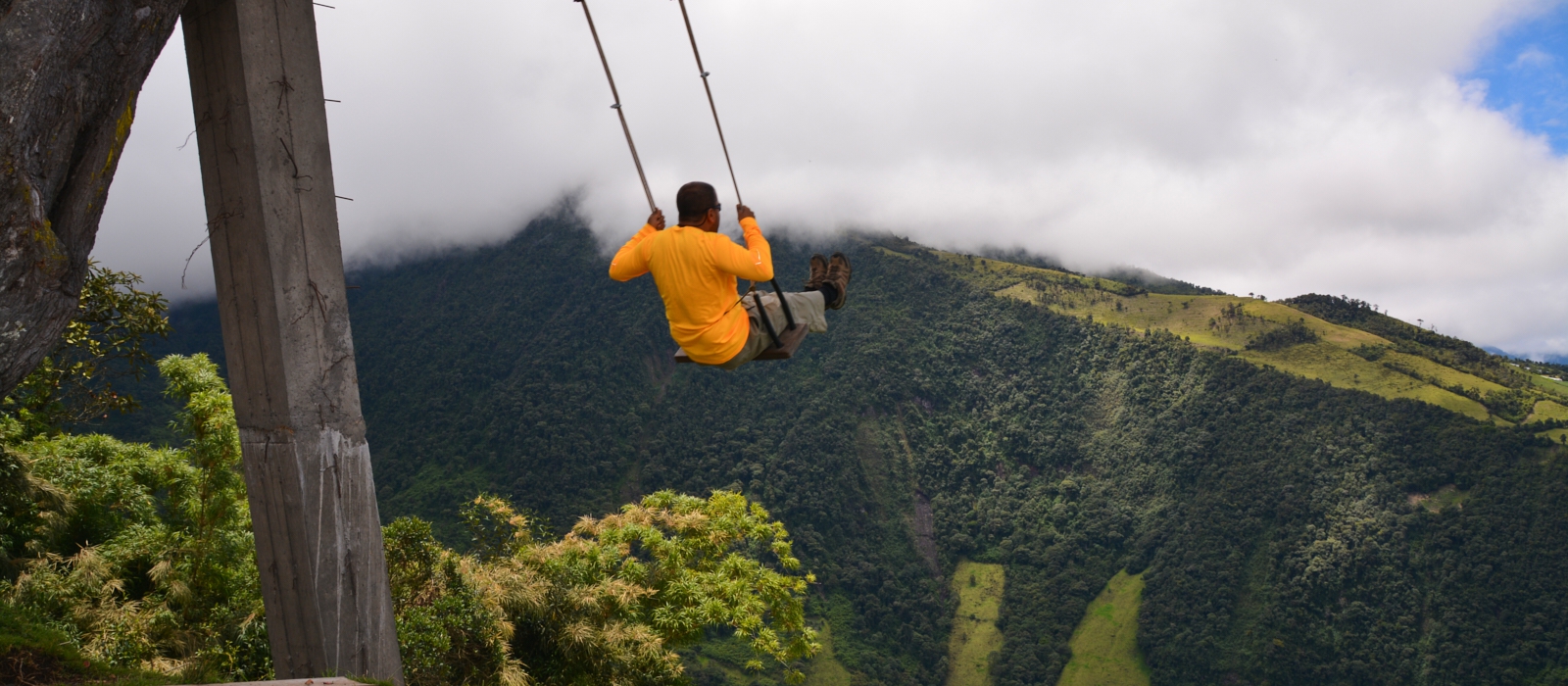 After breakfast, we will head across country by mountain bike from the Llanganates National Park to the Pastaza River Canyon, enjoying the stunning and unique cloud forest climate. We will pass through some Andean farmlands and a spectacular canyon containing a number of waterfalls. As we descend into the jungle, we can appreciate a picturesque view of Baños, and the active Tungurahua volcano. This spectacular volcano is the main attraction of area as it continues to spew ashes and light up the nighttime sky. In the afternoon we will have some time to go to The Swing at the End of the World, where the winner of the 2014 National Geographic photo contest took his impressive photo.