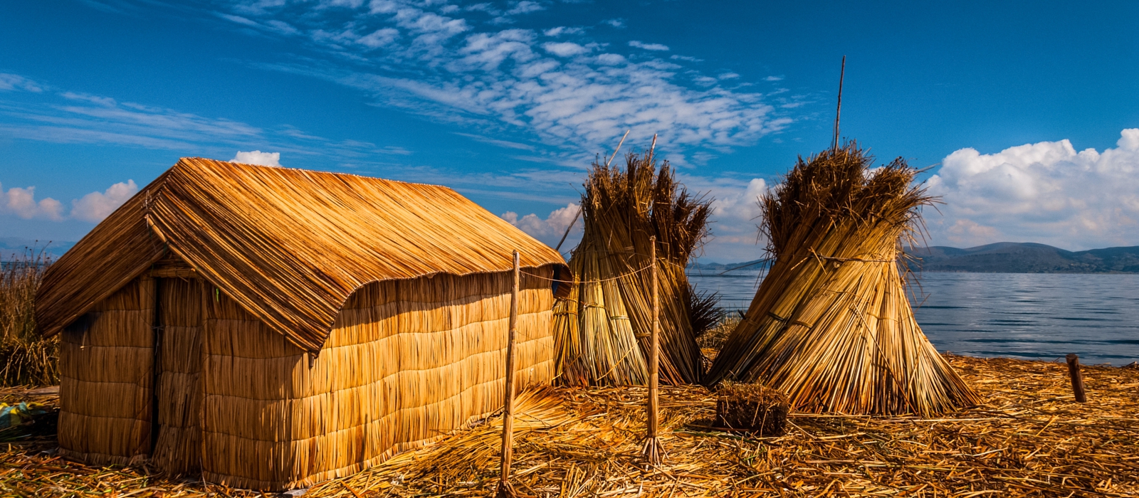 Later in the afternoon, as we begin heading back towards Puno, we’ll visit the amazing Floating Islands of the Uros people. When we arrive at the floating islands, you’ll probably be amazed by the scale of these floating reed constructions. The Uros originally built these islands for defensive reasons: if a threat appeared, they could move their island homes to a safer location. The islands are made from the totora reeds that grow around the lake, and each island is in a constant state of reconstruction, as old reeds are preplaced by new.